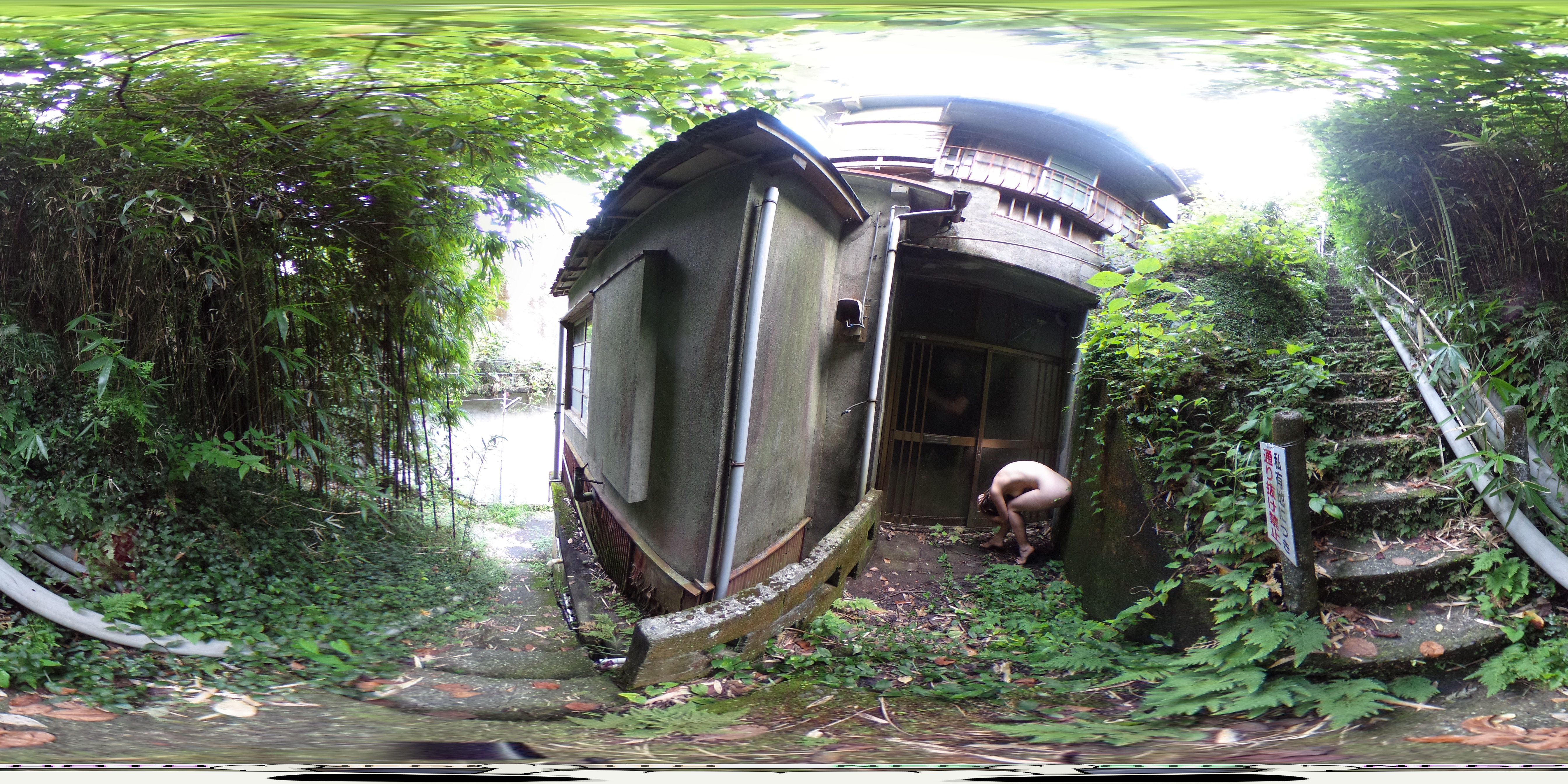 Here’s a 360° panorama of a set of stairs, outside one of the apartments. Those stairs were ridiculously steep, much steeper than they look! And despite the overgrowth, they were in active use. Someone walked up them, past us while we were shooting.
